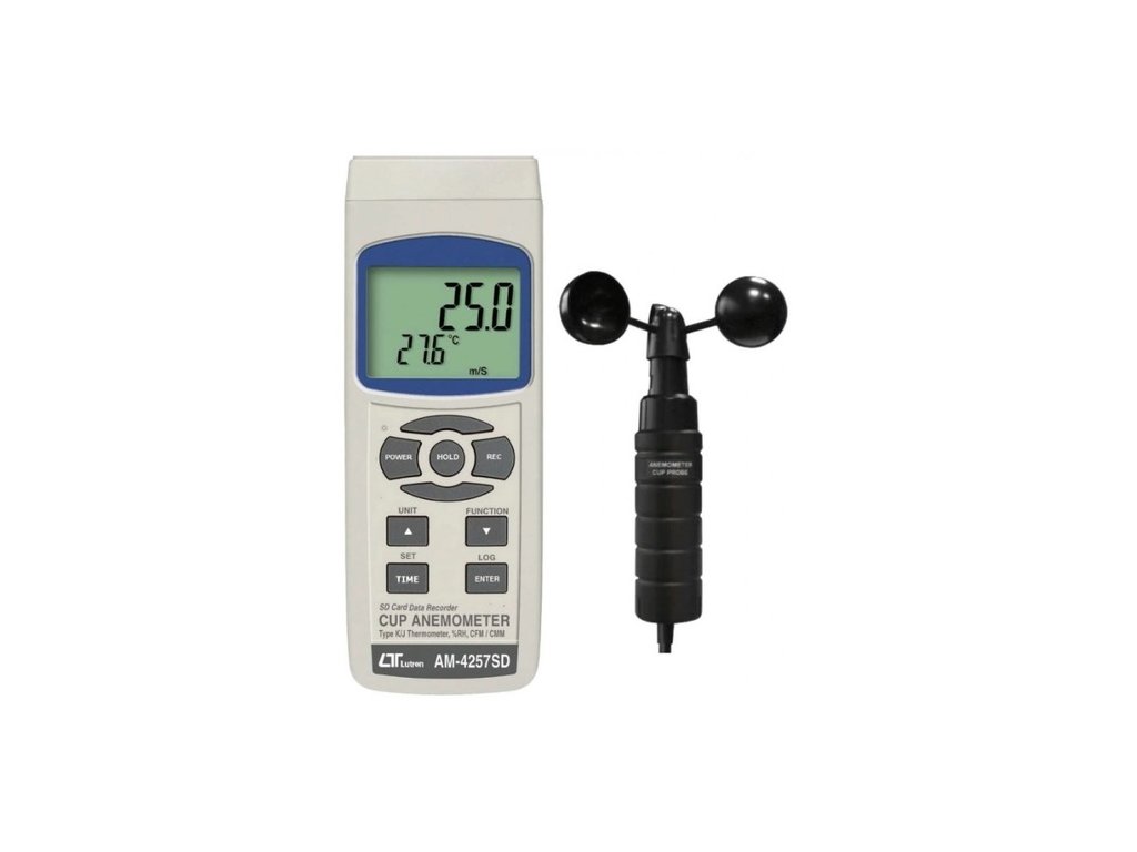 Merač rýchlosti prúdenia vzduchu s meraním teploty a záznamom na SD kartu.