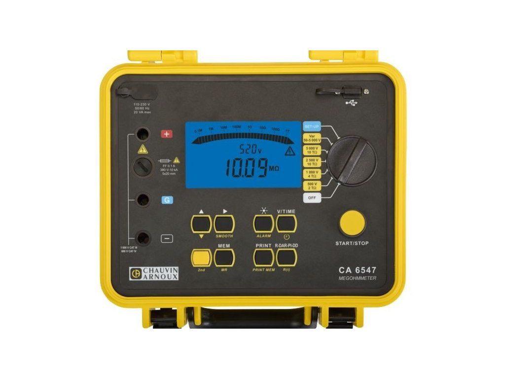 CA 6547 je určený na kvantitatívnu a kvalitatívnu analýzu izolácie. Automaticky meria aj napätie, kapacitu a zvyškový prúd. Okrem toho tento model ponúka ukladanie meraní a USB pripojenie na ovládanie prístroja a spracovanie údajov pomocou softvéru Megoohmeter.