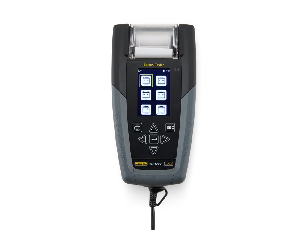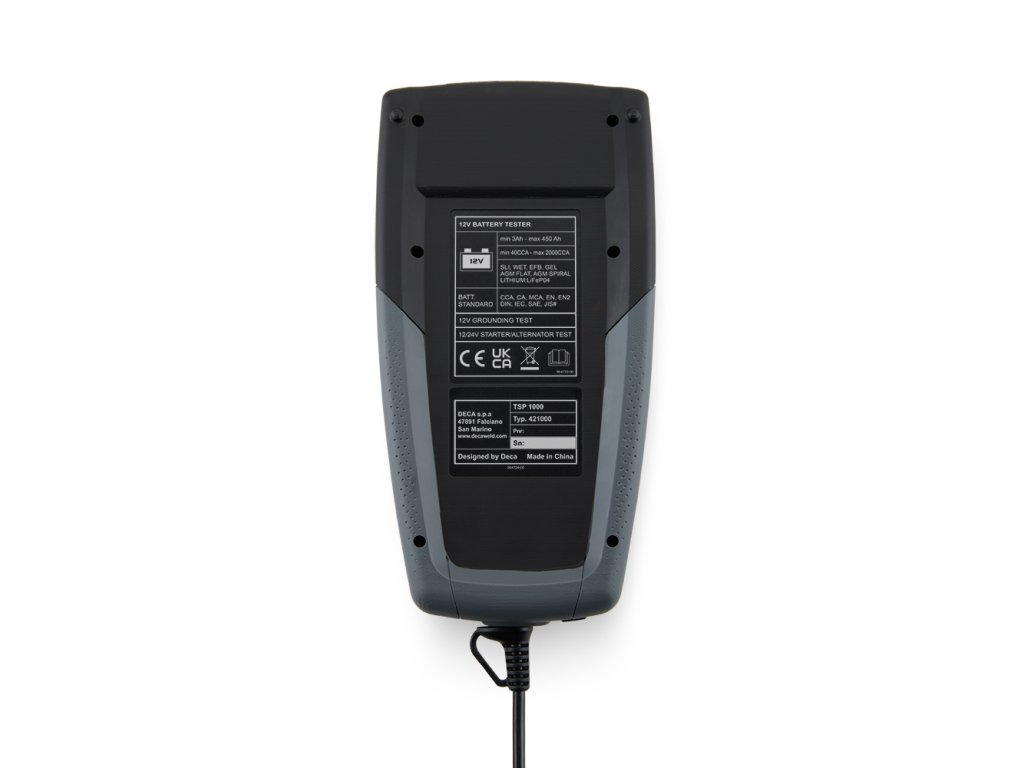 Tester akumulátorov Deca TSP 1000 je pokročilý a komplexný tester, špeciálne navrhnutý pre automobilový sektor, ktorý bol vyvinutý pre monitorovanie a diagnostiku nielen samotných akumulátorov typu WET, AGM, EFB, GEL, LIFEPO4, ale aj štartovacieho, nabíjacieho a uzemňovacieho systému vozidla, zabezpečuje optimálny výkon všetkých podmienok.