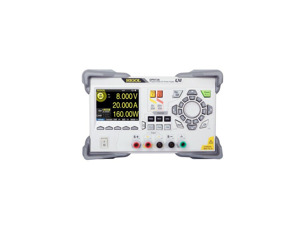 Programovateľný lineárny jednosmerný zdroj napájania RIGOL DP813A s 1 výstupom, 8 V/20 A (nízky rozsah), 20 V/10 A (vysoký rozsah), s diaľkovým snímaním, celkový výkon až 200 W