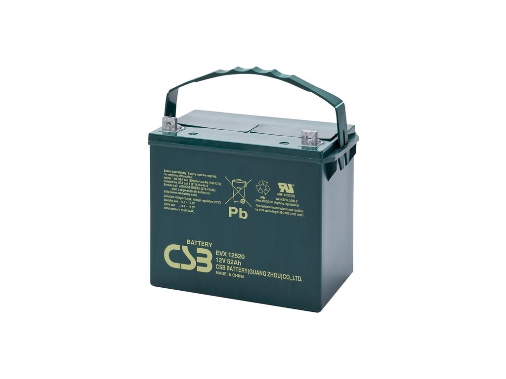 EVX12520 12V 52Ah – záložný, bezúdržbový, VRLA, uzatvorený, akumulátor od CSB Battery. Technológia AGM. Určený pre cyklickú prevádzku. Výhradný dovozca firma MICRONIX, spol. s r.o.