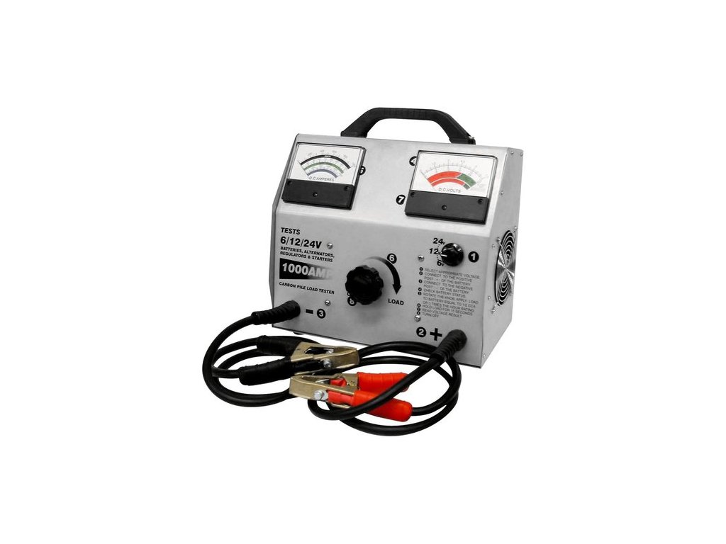FY-1000 je záťažový tester pre rýchle meranoe štartovacieho výkonu batérií v rozsahu 0 - 2000 CCA pre 6V / 12V a 24V motobatérie a autobatérie. Záťaž pre batérie je do 1000A. Veľkosť prúdu indikuje analógový (ručičkový) ampérmeter a pokles napätia analógový (ručičkový) voltmeter. Tester FY-1000 je možné použíť aj pre meranie dobíjacej sústavy automobilov alebo motocyklov.