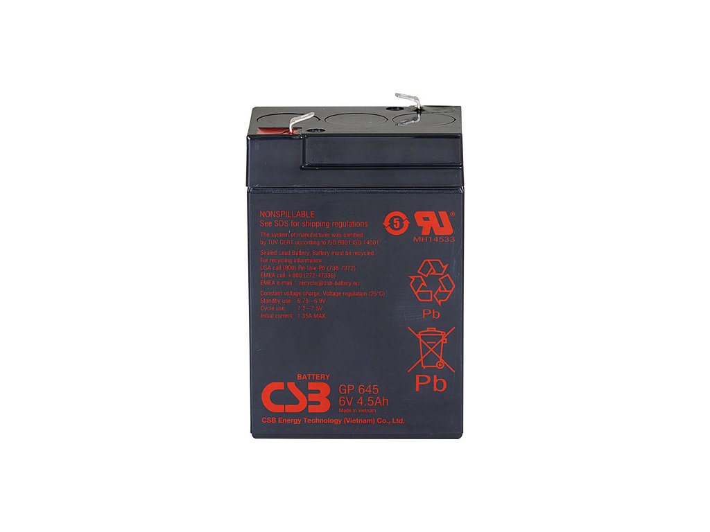 GP645 6V 4,5Ah - záložný, bezúdržbový, VRLA, uzatvorený akumulátor od CSB Battery. Technológia AGM. Určený pre záložné zdroje UPS, EZS, EPS a pod. Výhradný dovozca firma MICRONIX spol. s r.o.