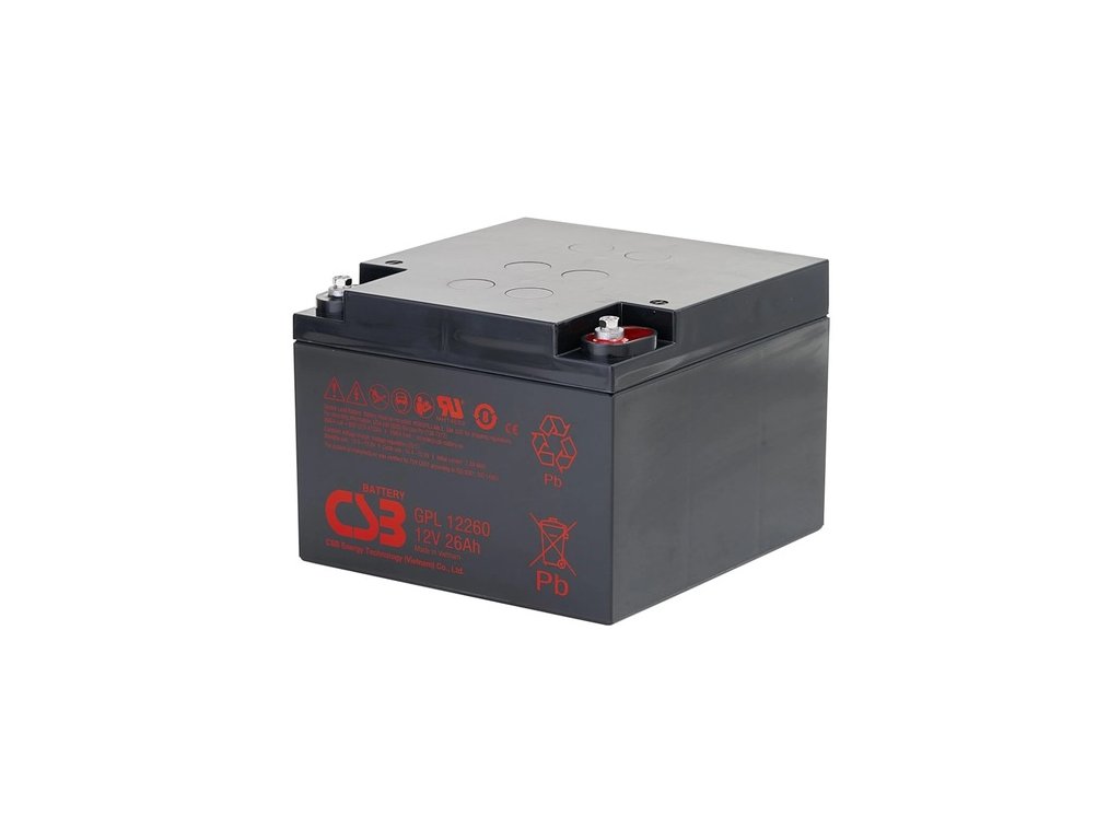 GPL12260 12V 26Ah - záložný, bezúdržbový, VRLA, uzatvorený akumulátor od CSB Battery. Technológia AGM. Určený pre záložné zdroje UPS, EZS, EPS a pod. Výhradný dovozca firma MICRONIX spol. s r.o.