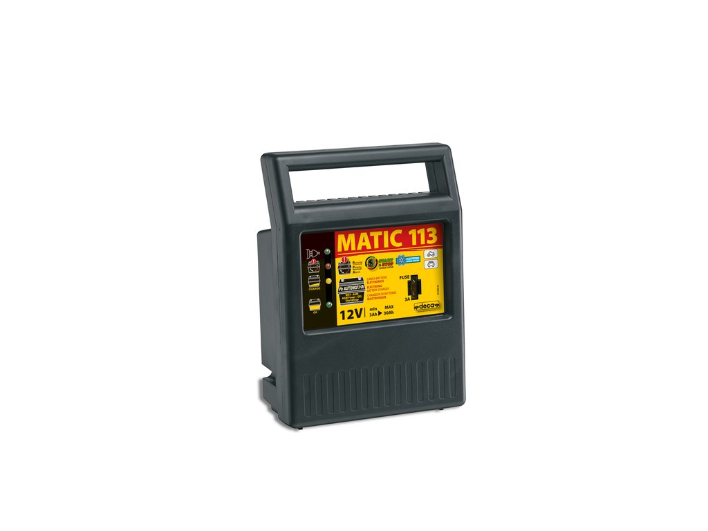 MATIC 113 - prenosná automatická 12V-1A nabíjačka olovených, bezúdržbových (MF), AGM, gélových akumulátorov. Výrobca firma DECA. Nabíjačka MATIC 113 je vhodná pre nabíjanie autobatérií a motocyklových akumulátorov kapacity 3Ah - 30Ah.