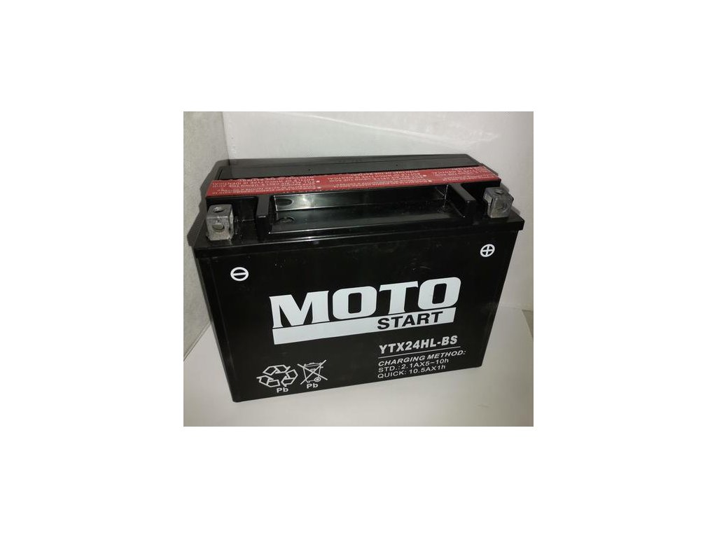 Olovená bezúdržbová batéria MS-YTX24HL-BS MF/Ca (Maintenance Free), vysoký štartovací prúd, nízke samovybíjanie.