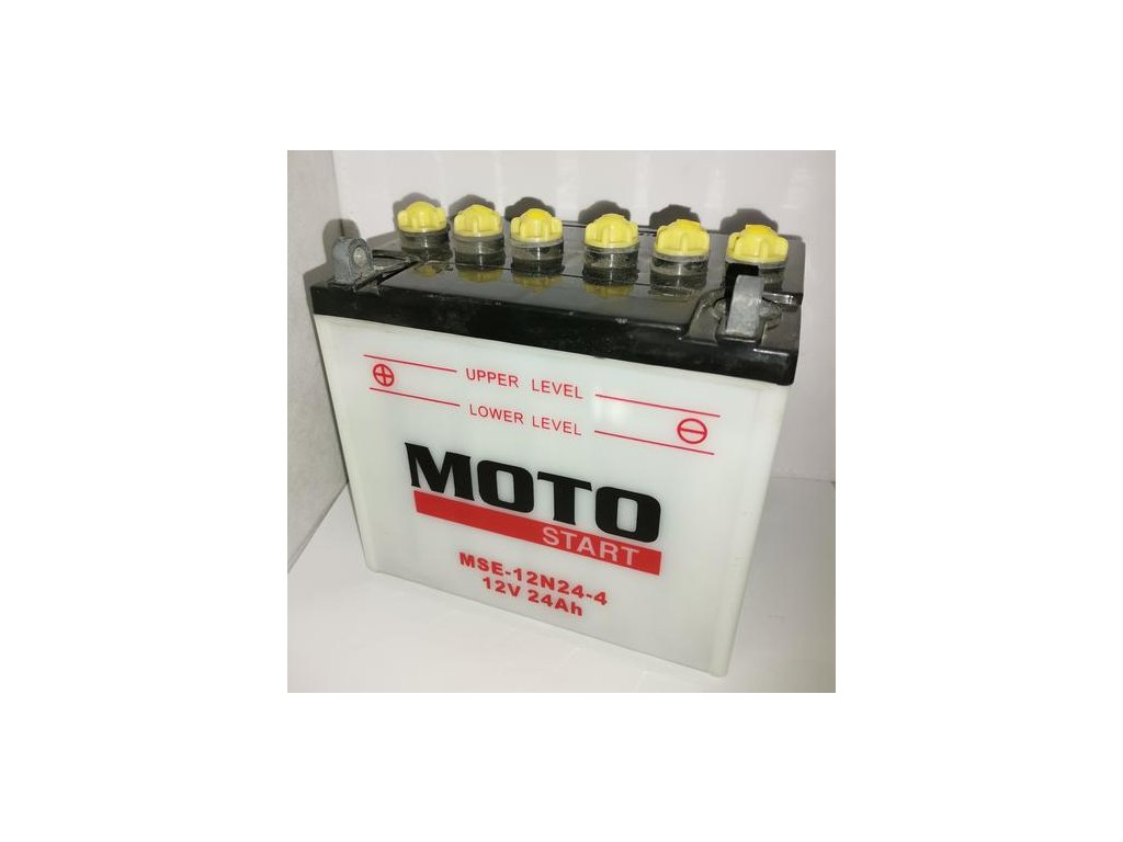 Motobatéria MOTOSTART MSE-12N24-4. Výhradný dovozca spoločnosť MICRONIX, spol. s r.o. Motobatérie posielame suché prednabité. Po naplnení kyselinou akumulátorovou a ponechání cca 1 hodinu je kapacita batérie cca 70%.