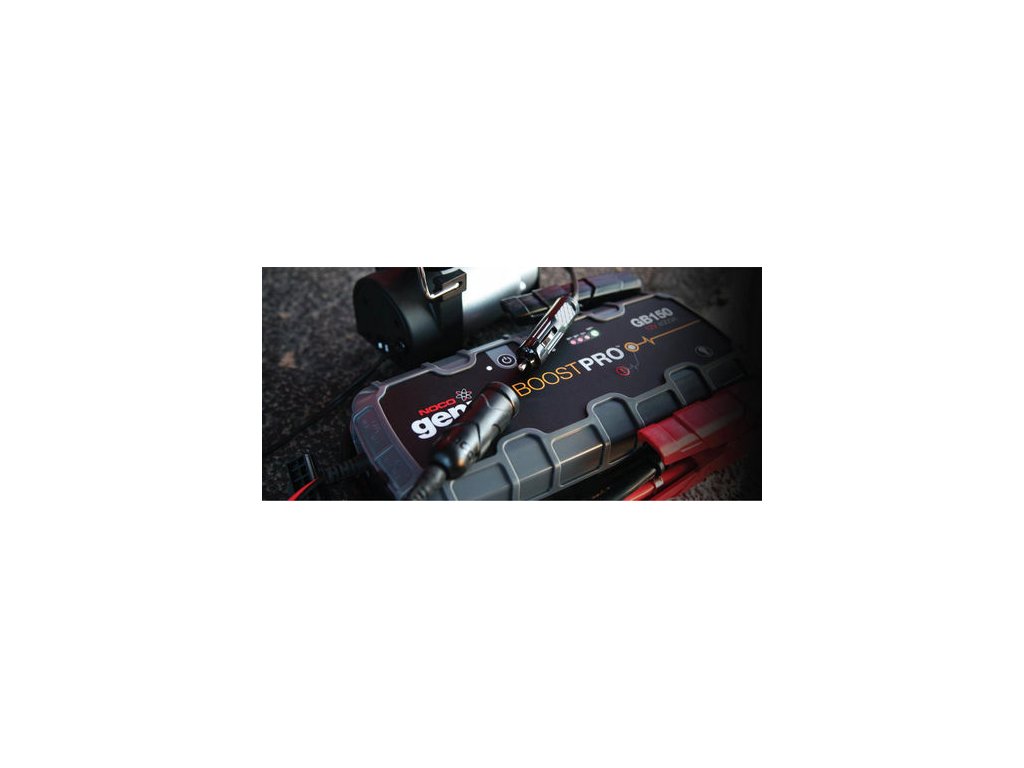 NOCO Genius Boost GB150 je veľmi bezpečné a jednoduché štartovacie zariadenie, ktoré je Vďaka vreckovým rozmerom jedno z najmenších, najľahším a najprenosnejších štartovacích zariadení. Ochrana spúšťacím tlačidlom zaisťuje bezpečnosť pri použití a vylučuje skrat štartovacieho systému. GB150 slúži aj ako zdroj spoľahlivého nabíjania tabletov, mobilov alebo GPS cez USB výstup. NOCO GB150 nabíjate jednoducho cez USB port z notebooku, PC, 230V AC USB adaptéra alebo z USB nabíjačky autozapaľovača.