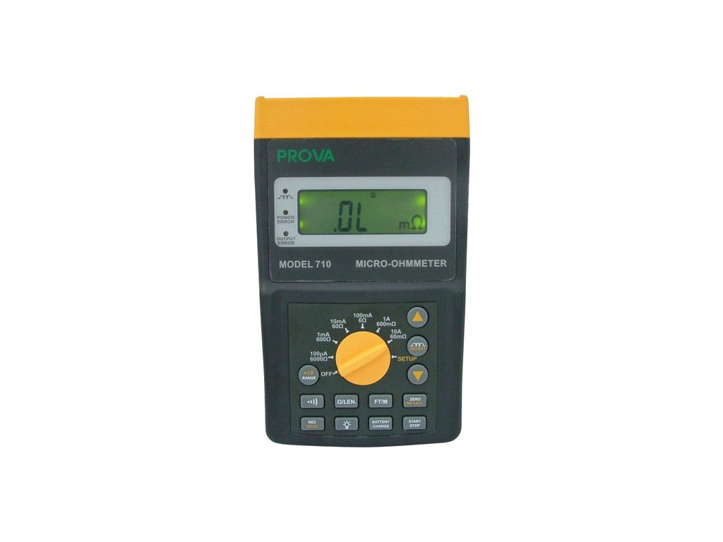 PROVA 710 je mikroohmmetr umožňující měření proudem až 10 A, s maximálním rozlišením 1 µΩ a základní přesností ±0,25%. Přístroj má rozsahy 60 mΩ až 6000 Ω, má podsvícený LC displej 5 dig.,umožňuje měření délky kabelů. Napájení je řešeno pomocí 11,1 V Lithiového akumulátoru s kapacitou 3800mAh, případně prostřednictvím AC/DC adaptéru (12 V DC / 2 A). Hmotnost přístroje je 1160 g včetně baterie. PROVA 710 má možnost nastavení alarmů pro horní i dolní hodnotu, paměť přístroje stačí na 3000 sad dat, komunikace s PC je možná pomocí rozhraní USB nebo RS232C (CD se softwarem součástí balení).