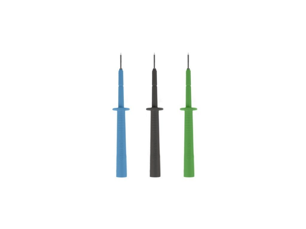 Meracie sondy s testovacím hrotom s priemerom 2 mm, ktoré sa hodia do testovacích otvorov zabudovaných v rôznych konektoroch a umožňujú dosiahnuť na miesta merania, ktoré nie sú dostupné testovacími sondami s testovacím hrotom s priemerom 4 mm.