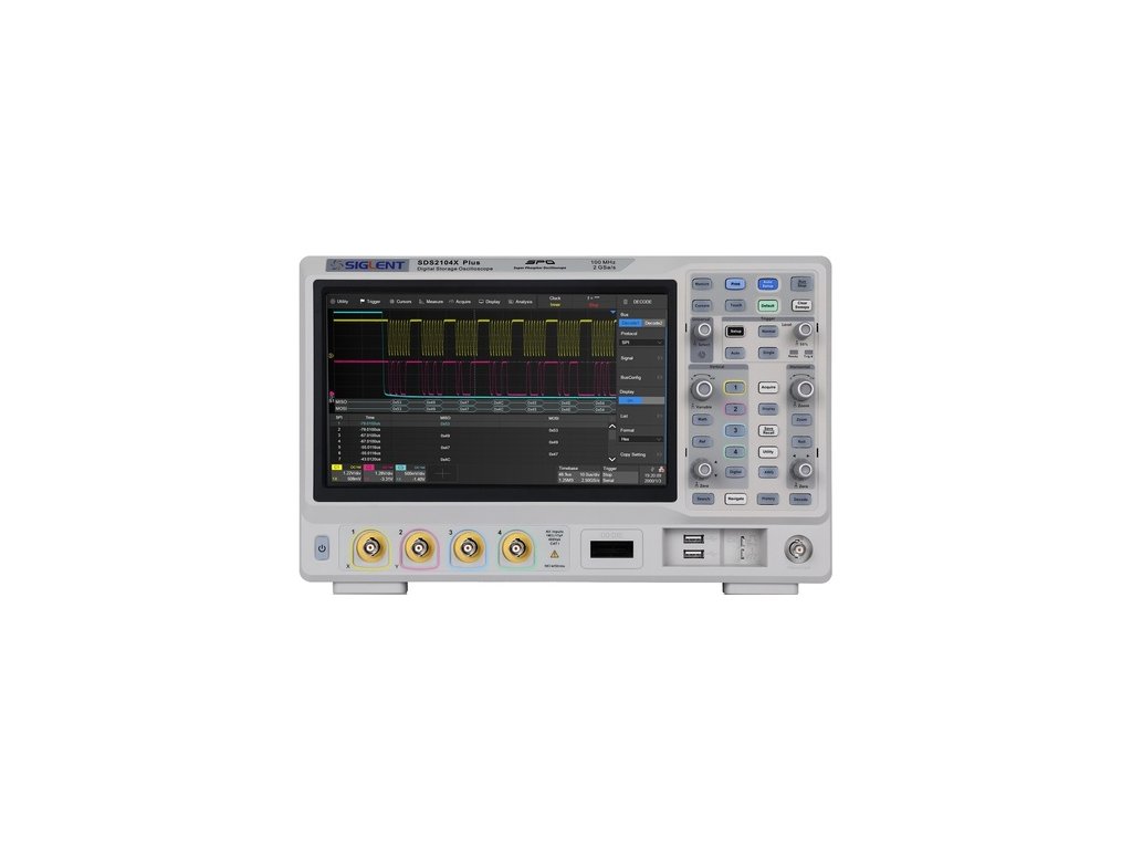 SIGLENT SDS2104X Plus je čtyřkanálový osciloskop s šířkou pásma do 100 MHz.