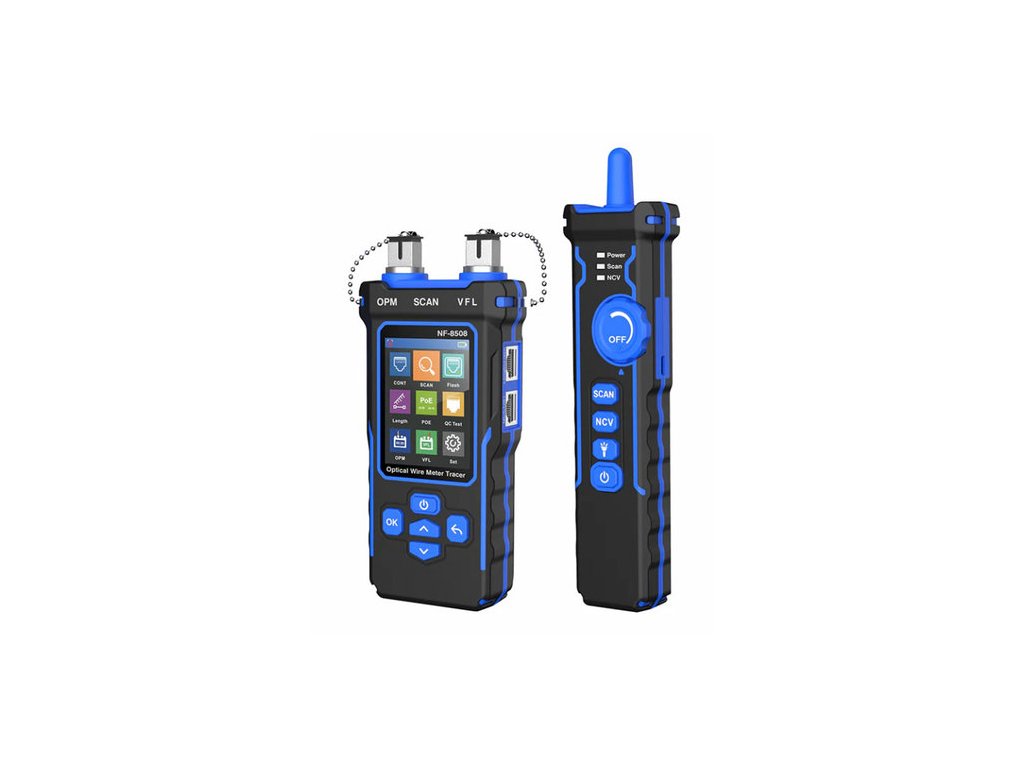 Meranie výkonu a strát na optických vláknach OPM - nastaviteľná vlnová dĺžka 850/1300/1310/1490/1550/1625. VFL - Visual Fault Locator - rýchla navigácia v bodoch prerušenia vlákna pomocou viditeľných červených svetiel. Mapovanie vodičov a test kontinuity ethernetových káblov Cat5 a Cat6. Zobrazte dĺžku a presné chyby so zameraním vzdialenosti poruchy.
